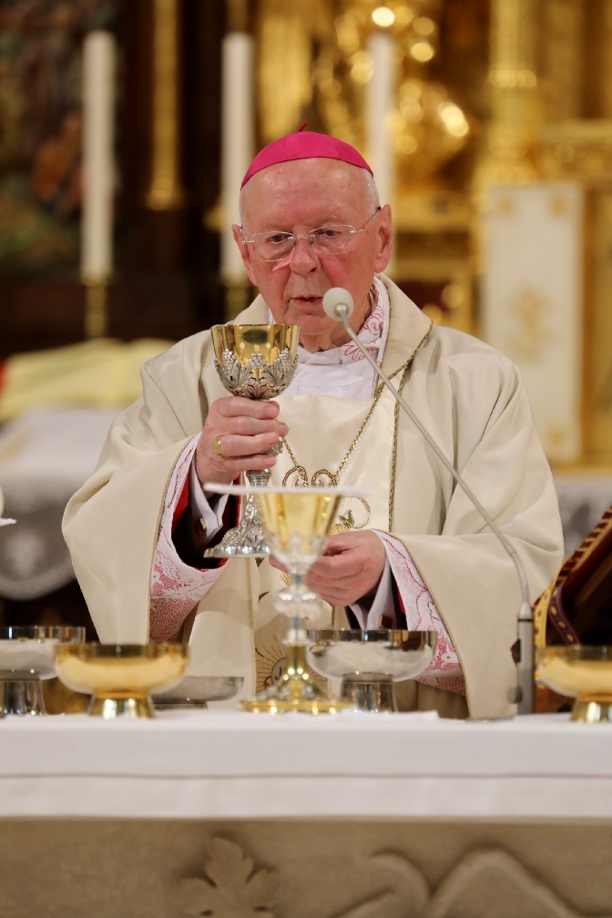 Fot. ks. Paweł KłysPóki mogę, chcę podnieść kielich zbawienia i wezwać imienia Pana. Chcę złożyć ofiarę pochwalną i wypełnić me śluby dla Pana przed całym jego ludem. Czynię to dziś podczas tej uroczystej liturgii wobec was wszystkich bracia i siostry. – mówił arcybiskup senior Władysław Ziółek podczas uroczystości 60-lecia święceń kapłańskich.