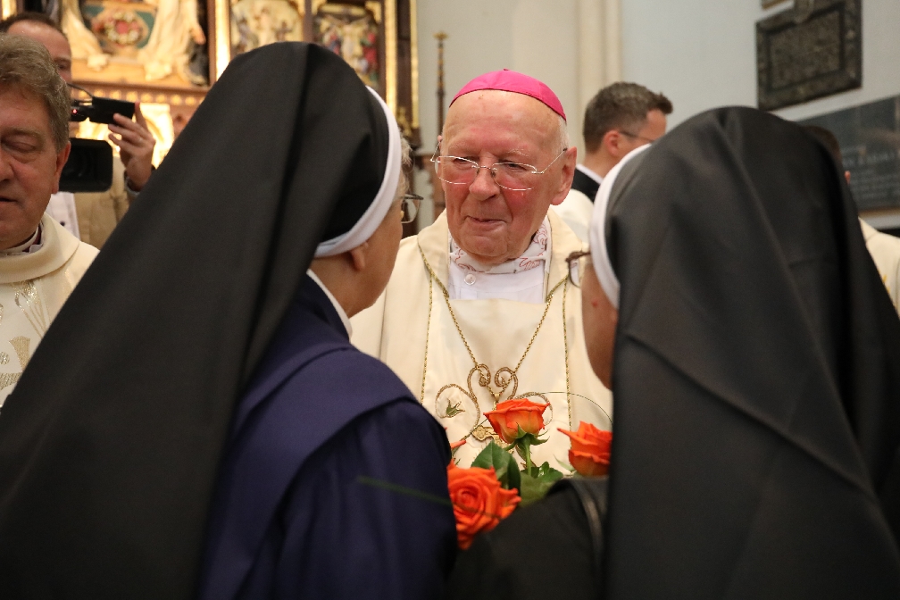 Na zakończenie liturgii swoje słowo do zebranych skierował dostojny Jubilat. Dziękując za wspólną modlitwę, pamięć, obecność i życzenia, arcybiskup senior przywołał na pamięć swoich rodziców oraz czas swojego wzrastania, nauki i kapłaństwa. Kończąc podkreślił: – Brakuje słów, które mogłyby oddać moją wdzięczność Panu Bogu za to, co w moim życiu stało się darem i tajemnicą. Brakuje słów, by należycie podziękować tym wszystkim, którym tak wiele zawdzięczam w porządku duchowym i materialnym. Zdaje sobie sprawę, że jakakolwiek próba wyrównania tego, co mi wyświadczył Bóg jest żadną miarą niemożliwa.- zaznaczył arcybiskup senior.