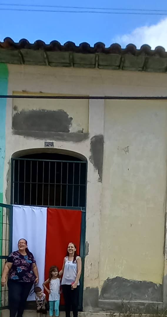 Lesly Arocha-Wysocki z miasta Maracay specjalnie kupiła kilka metrów białego i czerwonego materiału. Martwiła się, że krawcowa nie zdąży uszyć flagi na czas, ale zdążyła i tą ogromną flagą ozdobiła swój dom. Na zdjęciu pozuje z córką i wnuczką.