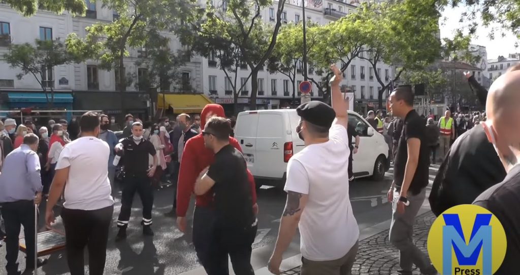 Już na początku trasy katolików, wśród których były głównie rodziny z dziećmi, wygwizdywali i obrzucali inwektywami przechodnie i osoby siedzące na kawiarnianych tarasach. Przed cmentarzem Père Lachaise doszło do spotkania z uczestnikami zakończonej tam manifestacji upamiętniającej Komunę Paryską, którzy wymachiwali czerwonymi sztandarami, wcześniej m.in. śpiewali „Międzynarodówkę” przy grobie jej kompozytora Eugène’a Pottiera. Krzyczeli oni pod adresem katolików: „Precz z faszystami!”. Kilkaset metrów dalej podeszła 20-osobowa grupa zakapturzonych młodych mężczyzn, którzy zaczęli uczestnikom marszu wyrywać banery i flagi oraz bić ich pięściami. Rzucali na katolików kosze na śmieci, butelki, a nawet elementy ogrodzenia. Jedna osoba została ranna w głowę i trafiła do szpitala. W tej sytuacji uczestnicy marszu schronili się w pobliskim kościele Notre-Dame de la Croix w oczekiwaniu na interwencję policji, która została wezwana.