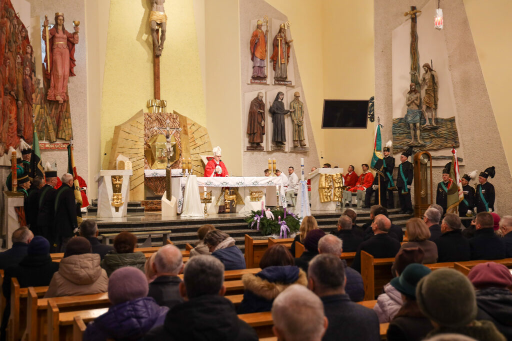 Centralnym punktem obchodów była Msza święta odpustowa pod przewodnictwem bp. Krzysztofa Nitkiewicza. Współkoncelebrowali ją proboszcz parafii ks. kan. Dariusz Sidor oraz kapłani z dekanatu. W świątyni zgromadzili się górnicy z rodzinami, dawni pracownicy przemysłu siarkowego, przedstawiciele instytucji miejskich oraz parafianie.
