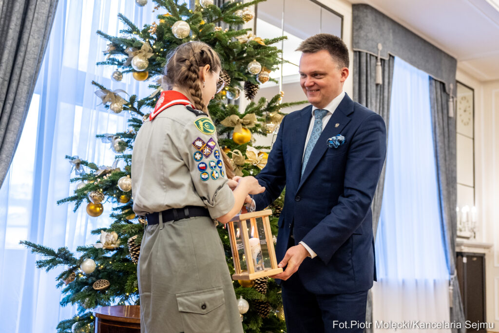 Marszałek Sejmu Szymon Hołownia przyjął w środę od harcerzy Związku Harcerstwa Polskiego Betlejemskie Światło Pokoju. – Przynosicie dziś do Sejmu najważniejszy dar, jaki można przynieść – życie i pokój, taki najgłębszy, który ma się w sobie – powiedział podczas spotkania z harcerzami marszałek Sejmu. Dziś parlamentarzyści spotkają się w południe na tradycyjnym opłatku w holu sejmowym.