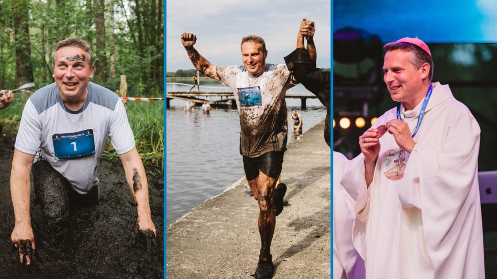 – Świetny bieg, wspaniała atmosfera! Ktoś się topi, drugi mu pomaga, podaje rękę, wyciąga za włosy… Wyzwanie jest mocne! – podsumowywał biskup chwilę przed tym, jak razem ze wszystkimi wskoczył do jeziora na wodną imprezę wieńczącą rywalizację.