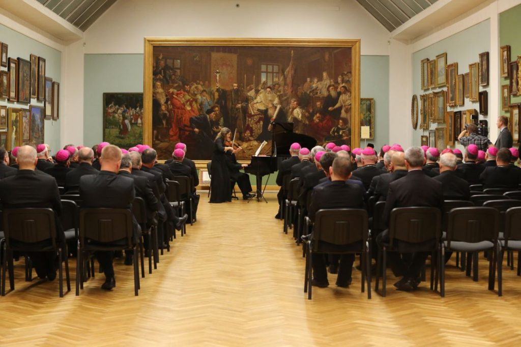 Fot. flickr.com / episkopatnewsJednym z wydarzeń towarzyszących 377. zebraniu plenarnego Episkopatu był koncert muzyki klasycznej zorganizowany w Sali Malarstwa Polskiego lubelskiego zamku. Podczas spotkania biskupi wysłuchali utworów Henryka Wieniawskiego, Karola Szymanowskiego i Wolfganga Amadeusza Mozarta w wykonaniu skrzypaczki Dominiki Falger oraz pianisty Jewgienija Sinajskiego. Koncert był okazją do spotkania się polskich hierarchów z przedstawicielami lokalnych władz samorządowych.
