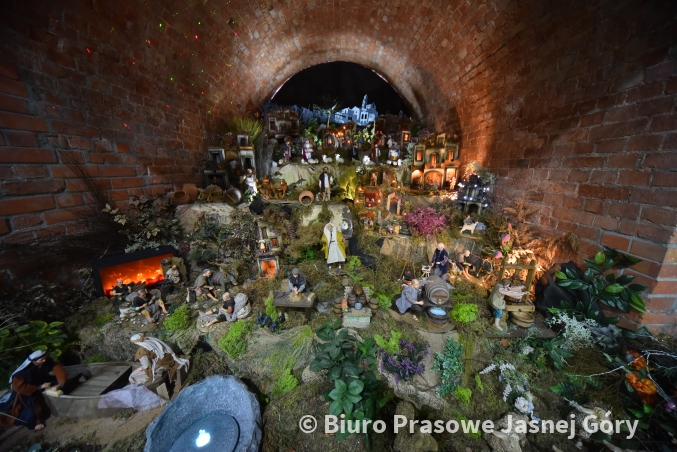Aż pół tysiąca postaci i innych elementów ukazujących codzienne ludzkie życie, w które przez swe narodziny „wszedł” Jezus, tworzy ruchomą szopkę umieszczoną na tzw. fosach. To jedna z największych pod względem liczby ruchomych figur tego typu szopek w Polsce. Jest to dzieło o. Bronisława Kraszewskiego jasnogórskiego dekoratora i jego współpracowników. – Każda figurka ma swoje „serce”. Jest nim urządzenie, które nią porusza. Każda wykonuje określoną czynność – opowiada o. Kraszewski. W szopce znalazły się postaci przedstawiające codzienne życie w Betlejem. Jest rybak, kowal, piekarz, praczki, są pasterze opiekujący się zwierzętami, ludzie ogrzewający się przy ognisku czy krzątający się przy swoich domach. W drugiej części ruchomej „betlejemki” nie brakuje odniesienia do polskiej rzeczywistości, tu zobaczymy figurki w regionalnych strojach czy białych zakonników z Jasnej Góry. Hołd Dzieciątku śpieszą oddać także święci i błogosławieni – św. Jan Paweł II i bł. kard. Stefan Wyszyński. To zauważenie bogatej polskiej historii, kultury i tradycji. – W tej szopce, trzeba się zatrzymać, by popatrzeć na szczegóły, na te małe elementy, które tak wiele mówią, i o ludzkim życiu, i o ludzkiej pracy, o dniu powszednim, tym dwa tysiące lat temu w Betlejem i teraz. To uświadamia też, że Jezus jest z nami, codziennie przychodzi w Eucharystii, w chlebie i winie, owocu ludzkich rąk. Powinno skłaniać do refleksji czy w naszej często gorączkowej codzienności, tęsknimy za Bogiem, szukamy Go – mówi paulin.