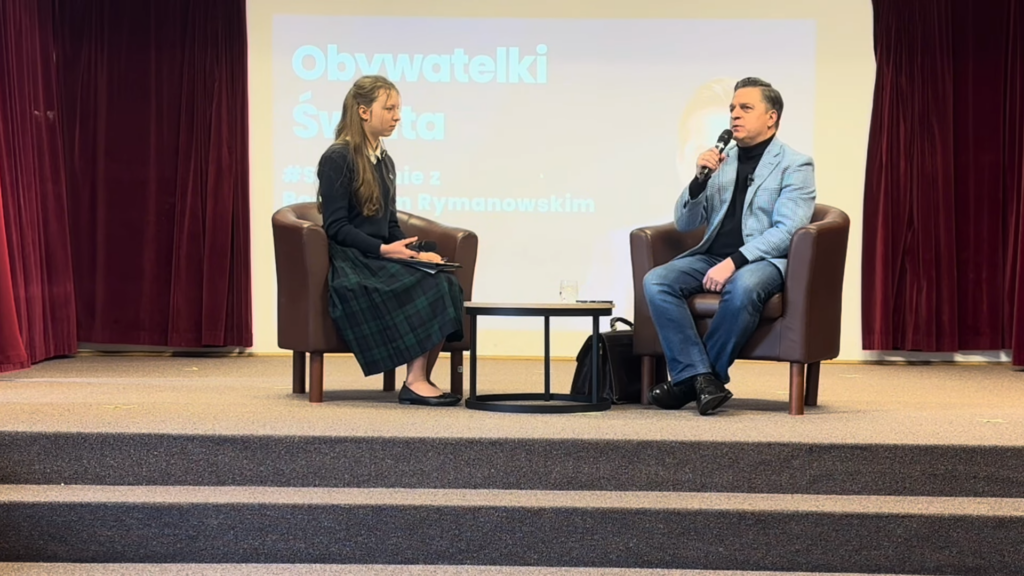 W ramach cyklu „Obywatelki Świata” Liceum Sióstr Nazaretanek odwiedził Bogdan Rymanowski – gwiazda dziennikarstwa Radia Zet i Polsat News. Podczas spotkania dziennikarz opowiedział o blaskach i cieniach swojego zawodu, a także o wyzwaniach, jakie napotykał w trakcie trwającej już ponad 30 lat kariery. Wspominał też swoje spotkania z Ojcem Świętym Janem Pawłem II oraz jego pożegnanie. Nie zabrakło również historii o wywiadzie ze Zbigniewem Herbertem.