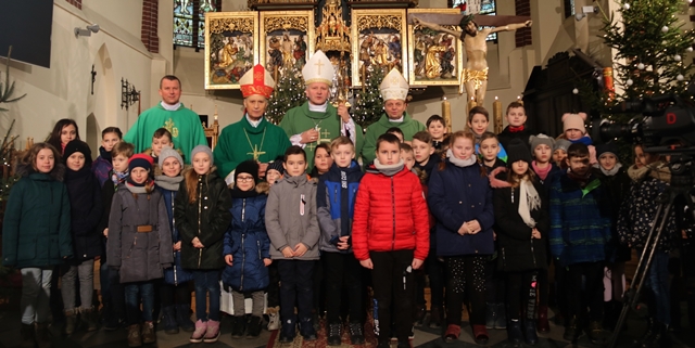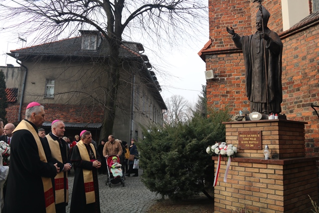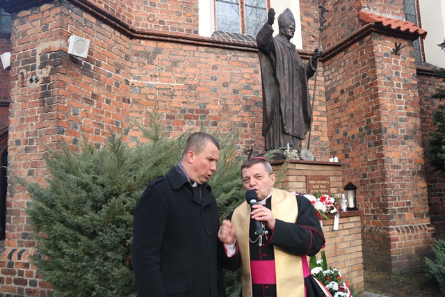 Uroczystość zakończyła się przy pomniku św. Jana Pawła II, gdzie bp Łukasz Buzun odmówił modlitwę do świętego, a bp Leon Dubrawski prowadził wspólny śpiew kolęd.