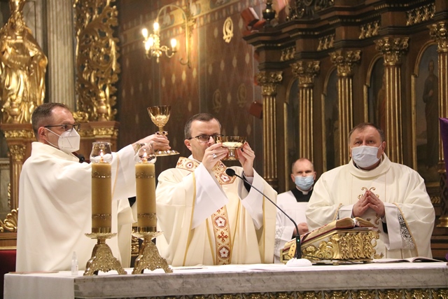 Mszę św. wraz z biskupem kaliskim Damianem Brylem koncelebrowali: ks. prał. Adam Modliński, proboszcz katedry, ks. kan. Marcin Papuziński, kanclerz Kurii Diecezjalnej w Kaliszu i ks. Dominik Wieczorek, wikariusz katedry.