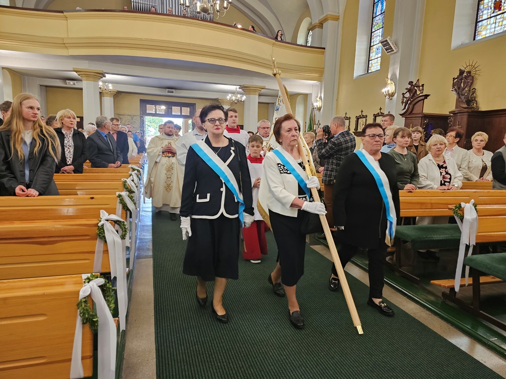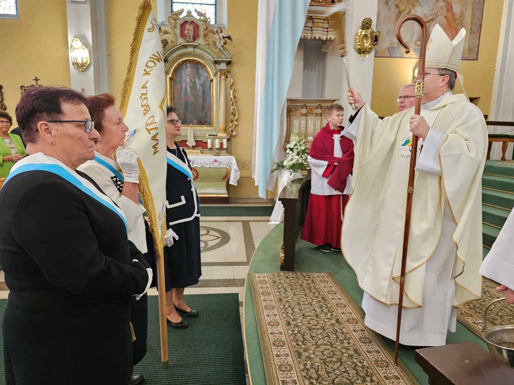Podkreślał, że ten sztandar jest także znakiem modlitwy wstawienniczej, bo modląc się na różańcu zanosimy do Boga sprawy Kościoła, świata, ojczyzny, parafii, ważne sprawy sąsiedzkie, rodzinne. – Gdy słyszymy o przykrych doświadczeniach sąsiadów, gdy coś trudnego dzieje się w naszym domu, gdy słyszymy o różnych problemach w naszej ojczyźnie to my, ludzie wierzący chwytamy różaniec i modlimy się w tych intencjach. Wstawiamy się u Boga za sprawy naszych bliźnich – powiedział celebrans.