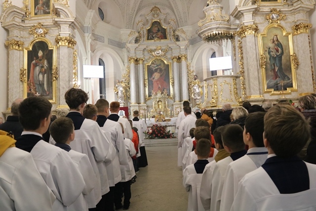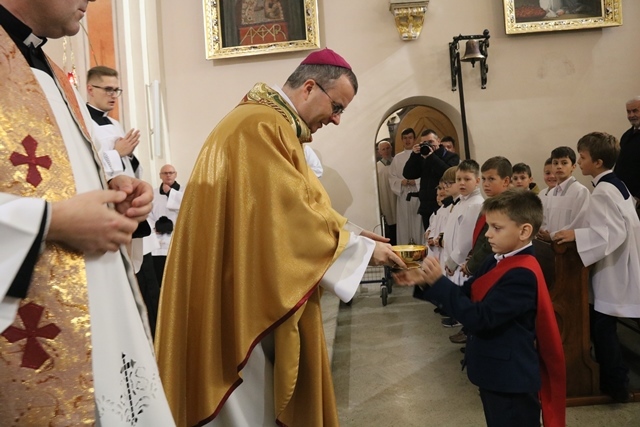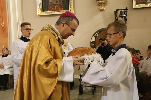 Wskazał, że obecni parafianie wraz z proboszczem dokonali także wielkiego dzieła odnowienia tej świątyni. – Ten pięknie odnowiony kościół to świadectwo waszej wiary, która na ważnym miejscu stawia Pana Boga. Odnowiliście ten kościół nie tylko, żeby nacieszyć się pięknymi rzeźbami, obrazami, murami, ale przede wszystkim po to, żeby to piękno otwierało was na Bożą chwałę, żeby wam przypominało o Panu Bogu, który jest blisko człowieka – podkreślił celebrans.