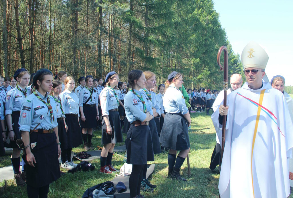 Zachęcał harcerki, aby wychodziły do świata, ale także pozostawały wierne wartościom i historii. – Chciałbym życzyć, żeby czas tego spotkania był dla każdej z was czasem umocnienia w wierności oraz czasem, żeby iść i dobrym duchem zarażać swoje społeczności, żeby zanieść innym dobrego ducha i nadzieję – przekonywał bp Bryl.