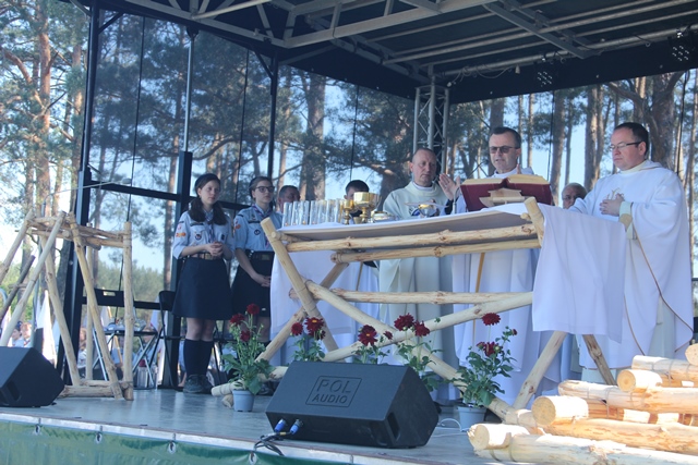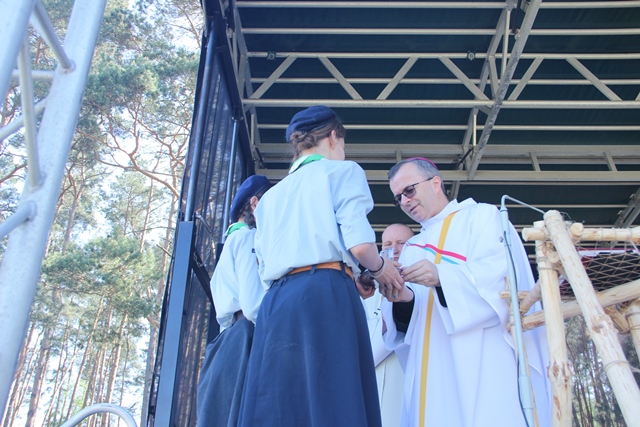 Fot. Ewa Kotowska-Rasiak/KAIPrawie 1000 harcerek uczestniczy w dniach od 1 do 5 maja w Wielkich Harcach Majowych, które odbywają się w Nadleśnictwie Oleśnica, w miejscowości Łazisko, w diecezji kaliskiej. – Czytajcie Słowo Boże i znajdujcie w nim światło do rozwiązywania różnych spraw – mówił biskup kaliski Damian Bryl, który dzisiaj przewodniczył Mszy św.