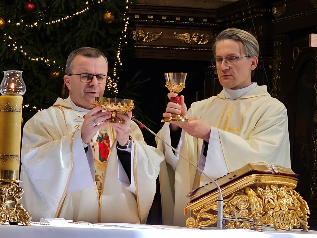 Wraz z bp. Damianem Brylem Mszę św. koncelebrował ks. kan. dr Jarosław Powąska, dyrektor Wydziału Katechetycznego Kurii Diecezjalnej w Kaliszu.