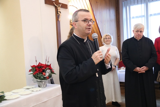 Fot. Ewa Kotowska-Rasiak/KAI– Chcę razem z wami modlić się, żeby te wymagające sytuacje nie podważyły w nas sensowności tego, co robimy, żebyśmy umieli robić to, co do nas należy, a resztę zostawiali Bożej łasce – mówił biskup kaliski Damian Bryl do katechetów podczas spotkania opłatkowego w Ostrzeszowie.