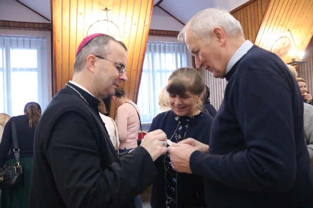 Po Mszy św. bp Damian Bryl spotkał się z katechetami w Domu Katolickim. Życzył katechetom, aby na nowo odkryli bliskość Jezusa. – Życzę, aby ta dobra wiadomość, że Pan jest z nami, mocno w was zagościła, żeby dotykała serce, umacniała, przemieniała, żeby potem iść z odwagą i o tym głosić, nawet jeśli niektórzy się odwracają, inni nie chcą słuchać, a jeszcze inni kontestują, różne rzeczy wykrzykują – powiedział bp Bryl.