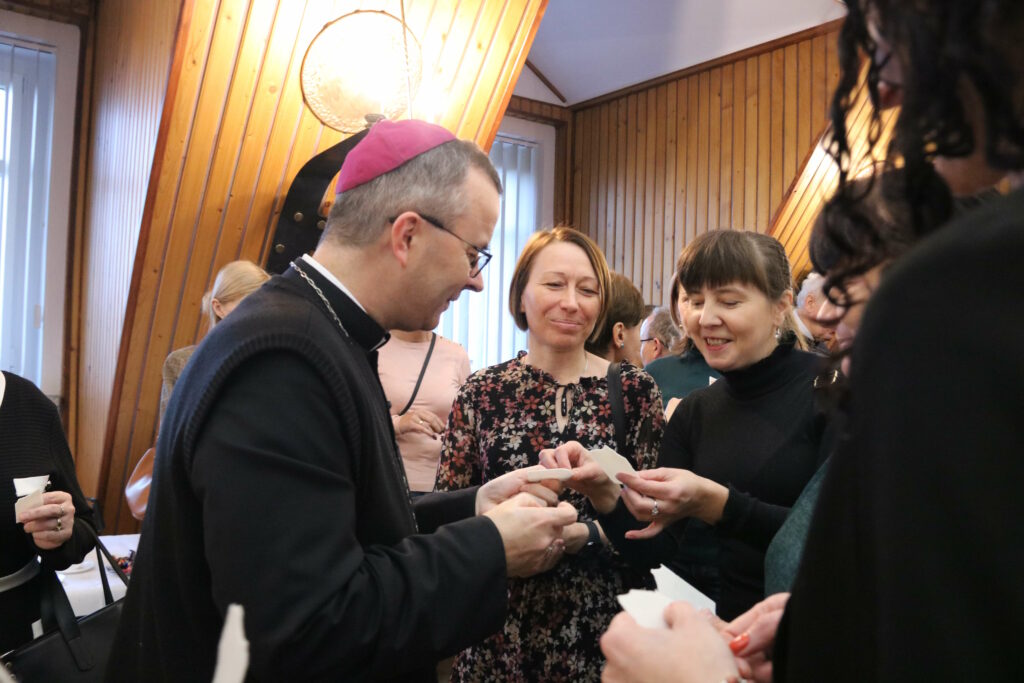 Po Mszy św. bp Damian Bryl spotkał się z katechetami w Domu Katolickim. Życzył katechetom, aby na nowo odkryli bliskość Jezusa. – Życzę, aby ta dobra wiadomość, że Pan jest z nami, mocno w was zagościła, żeby dotykała serce, umacniała, przemieniała, żeby potem iść z odwagą i o tym głosić, nawet jeśli niektórzy się odwracają, inni nie chcą słuchać, a jeszcze inni kontestują, różne rzeczy wykrzykują – powiedział bp Bryl.