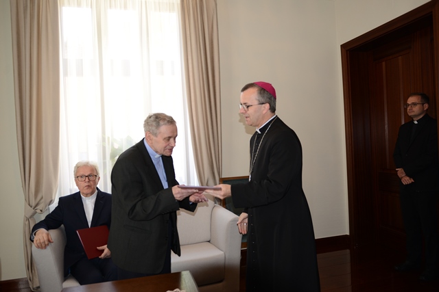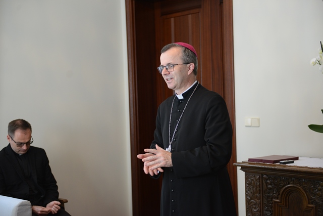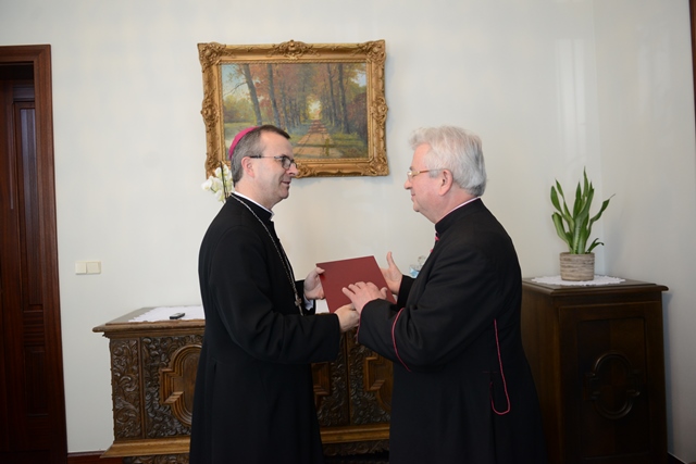 W spotkaniu uczestniczyli także: ks. prałat Zbigniew Cieślak, wikariusz biskupi, ks. kanonik Paweł Guździoł, wikariusz biskupi, ks. kanonik Marcin Papuziński, kanclerz Kurii Diecezjalnej w Kaliszu i ks. Szymon Rybak, notariusz i kapelan biskupa kaliskiego.