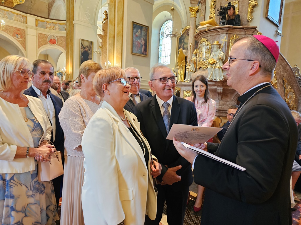W homilii biskup kaliski dziękował jubilatom za świadectwo wierności Panu Bogu i sobie. – Chcemy dzisiaj dziękować za te wasze 25, 50 lat wspólnej drogi, za to, że otwarliście się na Bożą łaskę u początku waszej wspólnej drogi i byliście wierni. Dziękujemy drodzy za tę wierność. Żyjemy w świecie, gdzie podważa się wierność, gdzie wielu mówi, że wierność nie jest na te czasy, a wasze świadectwo wierności jest dla nas ważnym umocnieniem – powiedział kaznodzieja.