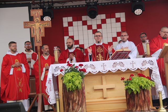 Fot. Ewa Kotowska-Rasiak/KAI– Niech ten czas będzie czasem spotkania, które daje siłę, żeby nasze życie było lepsze i piękniejsze – powiedział biskup kaliski Damian Bryl do młodzieży uczestniczącej w Spotkaniu Młodych w Wołczynie, które potrwa do piątku, 15 lipca. Spotkanie, którego organizatorami są Bracia Mniejsi Kapucyni Prowincji Krakowskiej, odbywa się już po raz dwudziesty ósmy. Hasło tegorocznego spotkania brzmi: ,,Miłością odżywieni”.
