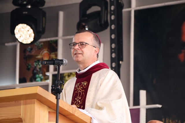 Uczestników spotkania odwiedził dzisiaj biskup kaliski Damian Bryl, który odprawił Mszę św. W homilii celebrans zaprosił młodych do kształtowania swojego życia według Ewangelii. – Chciałbym zaprosić, żebyśmy uczyli się słuchać z wiarą słowa, w którym Pan do mnie przychodzi. Trzeba słuchać tego słowa, które mówi do mnie Ktoś mi bardzo życzliwy, komu zależy na moim szczęściu i zbawieniu – mówił bp Bryl.