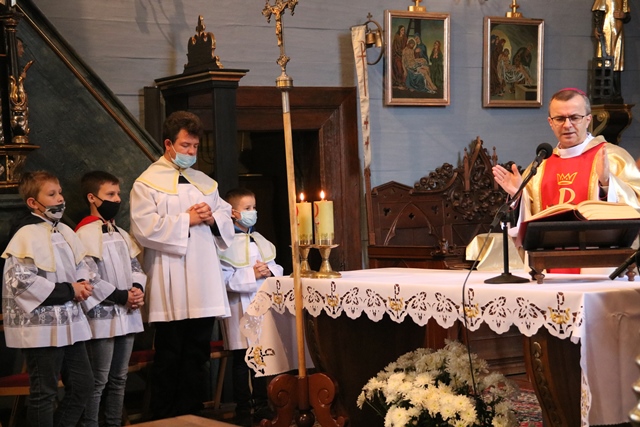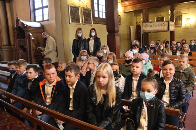Fot. Ewa Kotowska-Rasiak/KAI– Chciałbym zaprosić, żeby szkoła na wzór Pana Jezusa kształtowała wrażliwych ludzi, którzy potrafią dostrzec tego, który jest obok i który potrzebuje pomocy. Czasy tej pandemii mocno nam pokazały, jak potrzebni jesteśmy sobie nawzajem – mówił biskup kaliski Damian Bryl podczas Mszy św. w kościele pw. św. Andrzeja Apostoła i św. Wawrzyńca w Baranowie na inaugurację nowego roku szkolnego 2021/2022.