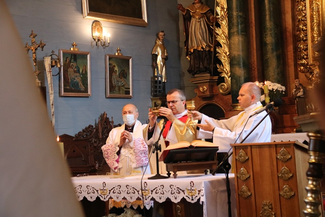 Wraz z biskupem kaliskim Damianem Brylem Mszę św. koncelebrował ks. Szymon Rybak, kapelan biskupa. Modlił się także ks. kan. Jerzy Kondal, proboszcz parafii pw. św. Andrzeja Apostoła i św. Wawrzyńca w Baranowie.
