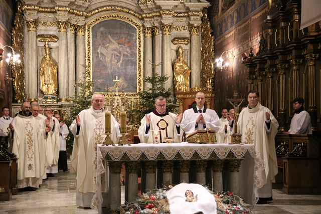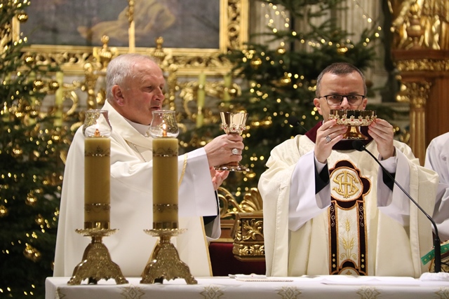 Z biskupem kaliskim Damianem Brylem Mszę św. koncelebrowali: biskup pomocniczy Łukasz Buzun (paulin), delegat biskupa kaliskiego ds. życia konsekrowanego ks. kan. Michał Kieling, proboszcz parafii katedralnej ks. prał. Adam Modliński i kapłani zakonni.