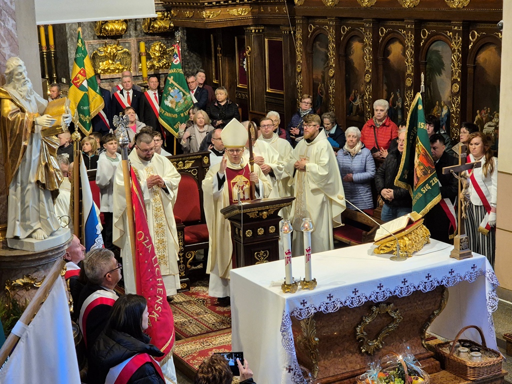 W homilii celebrans dziękował sołtysom za ich zaangażowanie. – Drodzy sołtysi, dzisiaj cieszymy się i Panu Bogu dziękujemy za to, co robicie w waszych wioskach, że stają się coraz piękniejsze, coraz wygodniejsze do życia. Dziękujemy, bo to jest zasługa często was i waszych rad. To jest często owoc dużego zaangażowania, biegania, pisania różnego rodzaju projektów – powiedział bp Bryl.