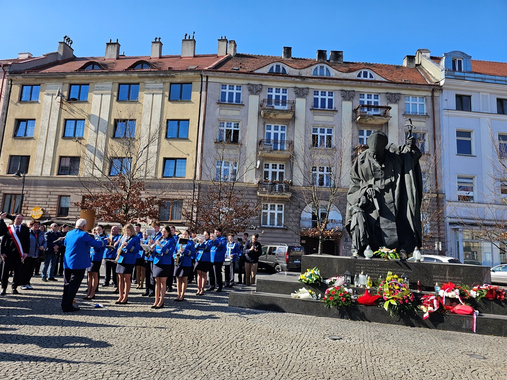Pielgrzymkę zakończyła procesja pod figurę św. Jana Pawła II, gdzie złożono kwiaty i odśpiewano Barkę.