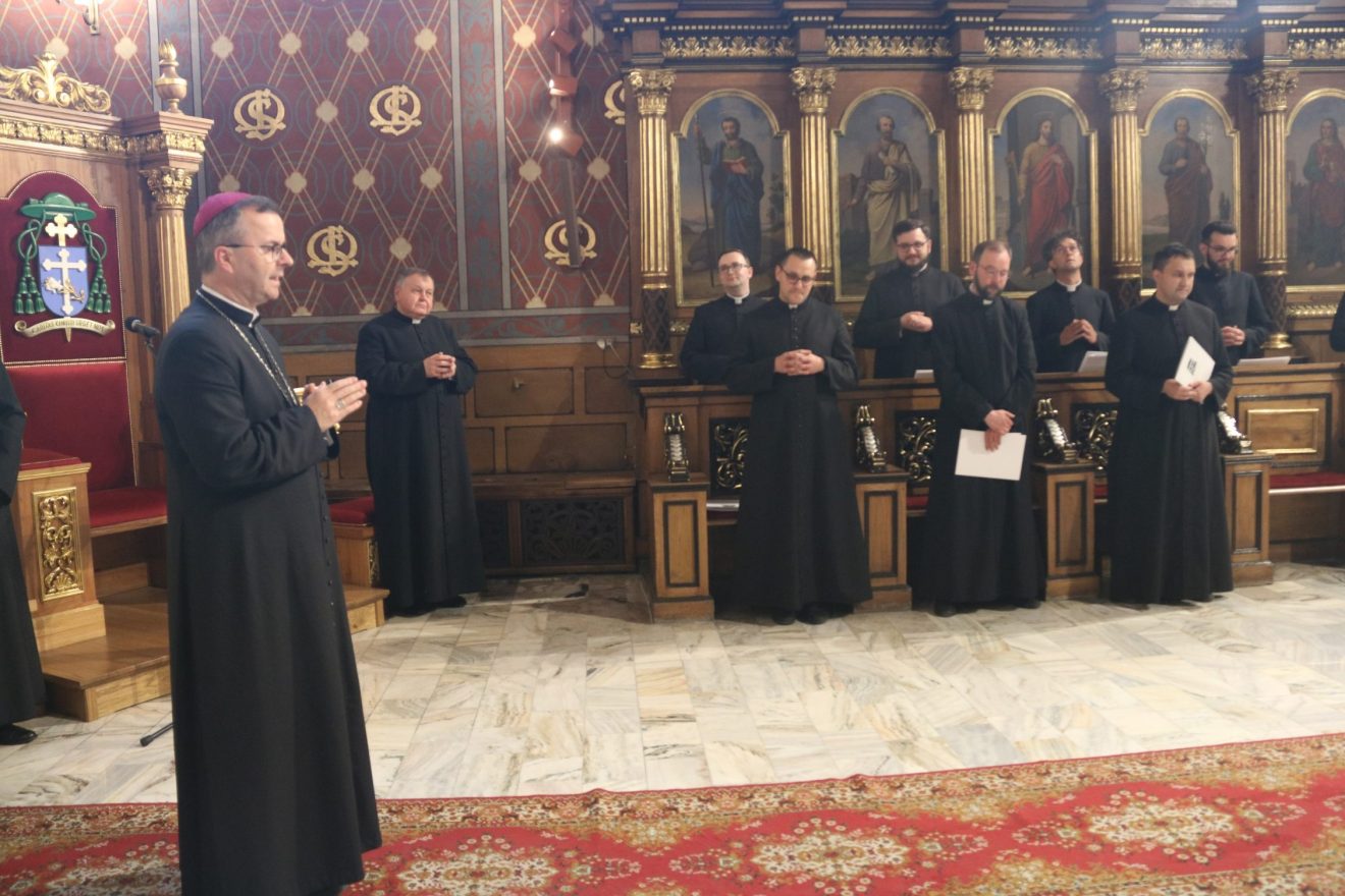 Po odmówieniu nieszporów biskup kaliski Damian Bryl wręczył kapłanom dekrety posyłające na nowe placówki wikariuszowskie.