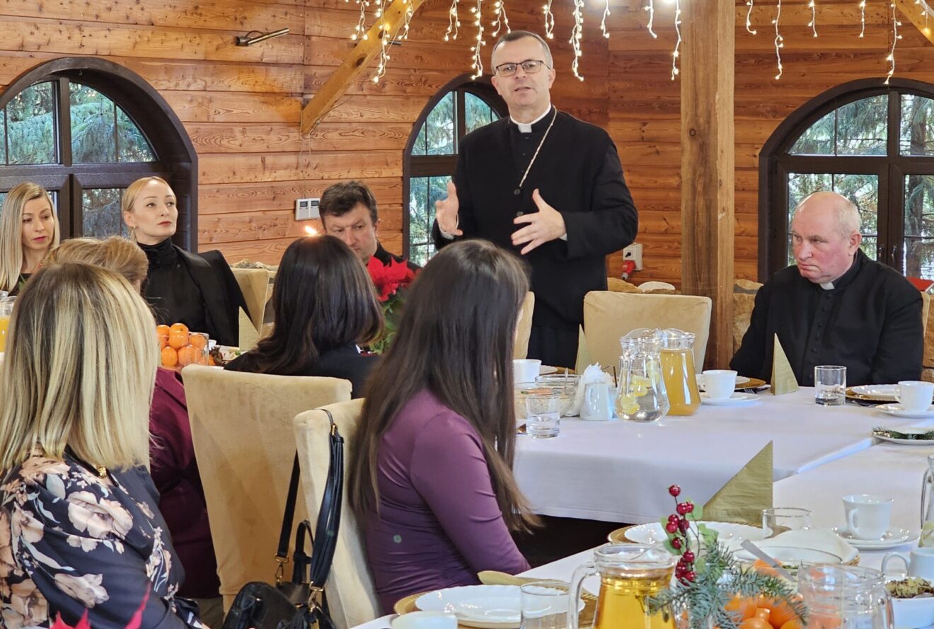 Po przełamaniu się opłatkiem biskup zasiadł z pracownikami Caritas do wspólnej wieczerzy.