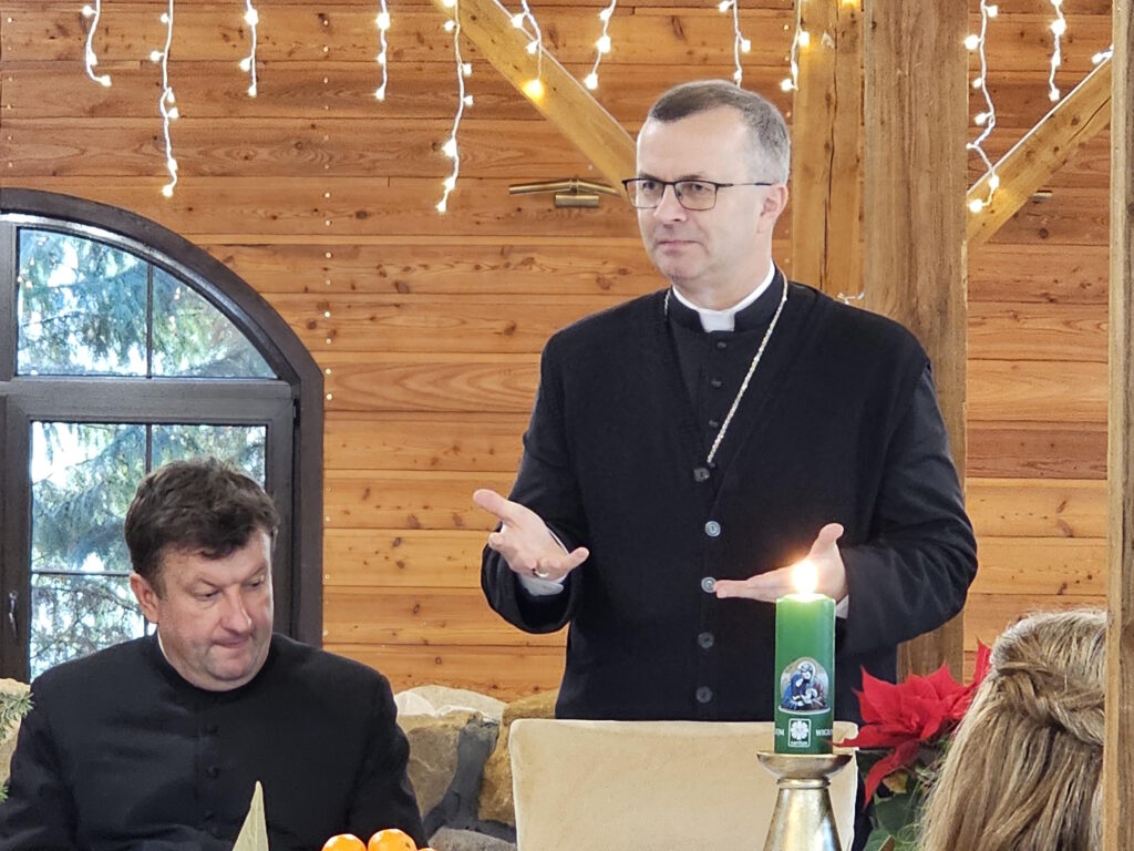 Fot. Ewa Kotowska-Rasiak/KAIWażne jest, żebyśmy uczyli się otwartości i wytrwałości, żebyśmy szukali, jak możemy lepiej, piękniej, mądrzej, umiejętniej służyć, pomagać i towarzyszyć – mówił bp Damian Bryl do pracowników Caritas Diecezji Kaliskiej. Biskup kaliski przełamał się opłatkiem z obecnymi na spotkaniu w ośrodku „Pascha” w Przedborowie.