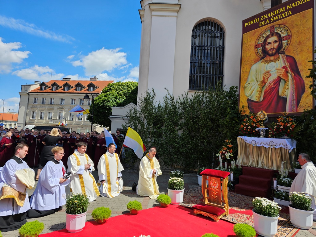 Po Mszy św. procesja przeszła ulicami miasta. Przy każdym ołtarzu rozważanie dotyczące Eucharystii wygłosił ks. Dominik Herbeć. Na kaliskim Rynku biskup kaliski udzielił błogosławieństwa Najświętszym Sakramentem na cztery strony świata.