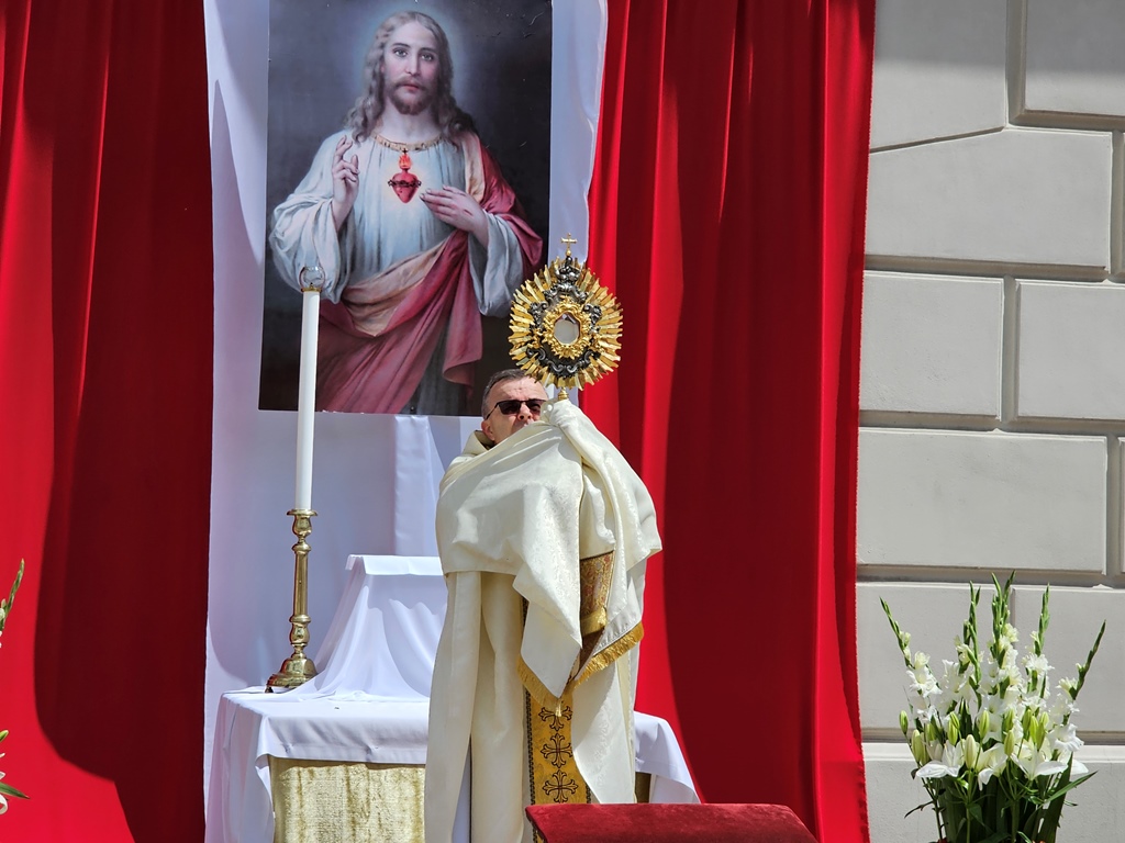 Jako pierwsze postawił pytanie: „Czy wierzę, że Jezus jest prawdziwie obecny w Eucharystii?” – Cały Kościół dzisiaj tę wiarę wyznaje, ale czy ja mogę też powiedzieć, że jestem wewnętrznie przekonany, że w tym małym chlebie jest Jezus, nasz Pan. Dzisiaj chcemy modlić się o głęboką wiarę, że Jezus choć ukryty, lecz prawdziwy jest z nami w Eucharystii – powiedział celebrans.