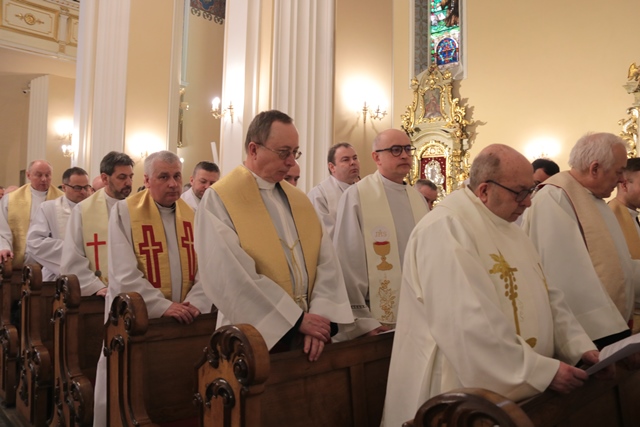 Mszę św. wraz z bp. Damianem Brylem koncelebrowali: bp Łukasz Buzun, pracownicy Kurii Diecezjalnej, księża dziekani oraz licznie zgromadzeni kapłani z diecezji kaliskiej.