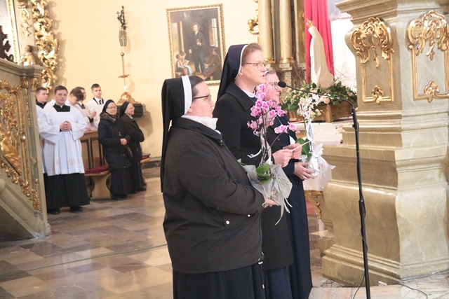 Przed błogosławieństwem pasterskim życzenia bp. Damianowi Brylowi w imieniu księży złożył bp Łukasz Buzun, biskup pomocniczy diecezji kaliskiej. Słowa życzeń wypowiedziały także siostry zakonne.