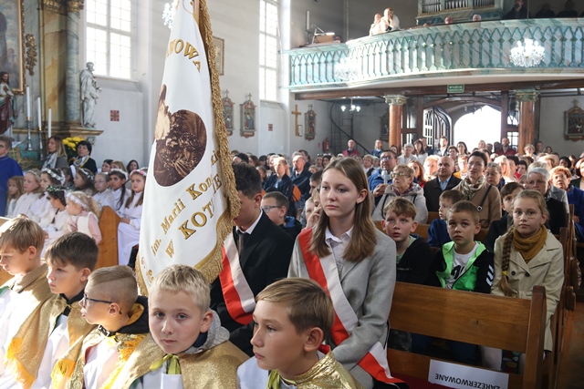 Fot. Ewa Kotowska-Rasiak/KAI– Tak jak święci w niebie orędują za nami, tak samo i my możemy wstawiać się za tych, których znamy. To jest piękne doświadczenie, że modlę się nie tylko za siebie, ale wstawiam się za innych i tak razem budujemy Kościół, modląc się za siebie nawzajem – mówił bp Damian Bryl, który odprawił sumę odpustową ku czci Wszystkich Świętych w Kotlinie. Biskup kaliski poświęcił odnowiony dach i wieżę kościoła oraz nowy dzwon im. Jezus, Maryja i Józef.