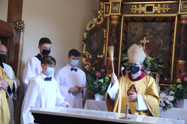 W homilii celebrans dziękował proboszczowi i parafianom za podjęcie trudu odbudowy kościoła. – Chciałbym wyrazić wielką wdzięczność i szacunek wobec działań ks. proboszcza i waszych, że mimo tych trudnych czasów udało się podjąć to dzieło. Odremontować kościół w tak trudnych czasach pandemii to znak, że Pan Bóg jest wśród nas i nam błogosławi – przekonywał bp Bryl.
