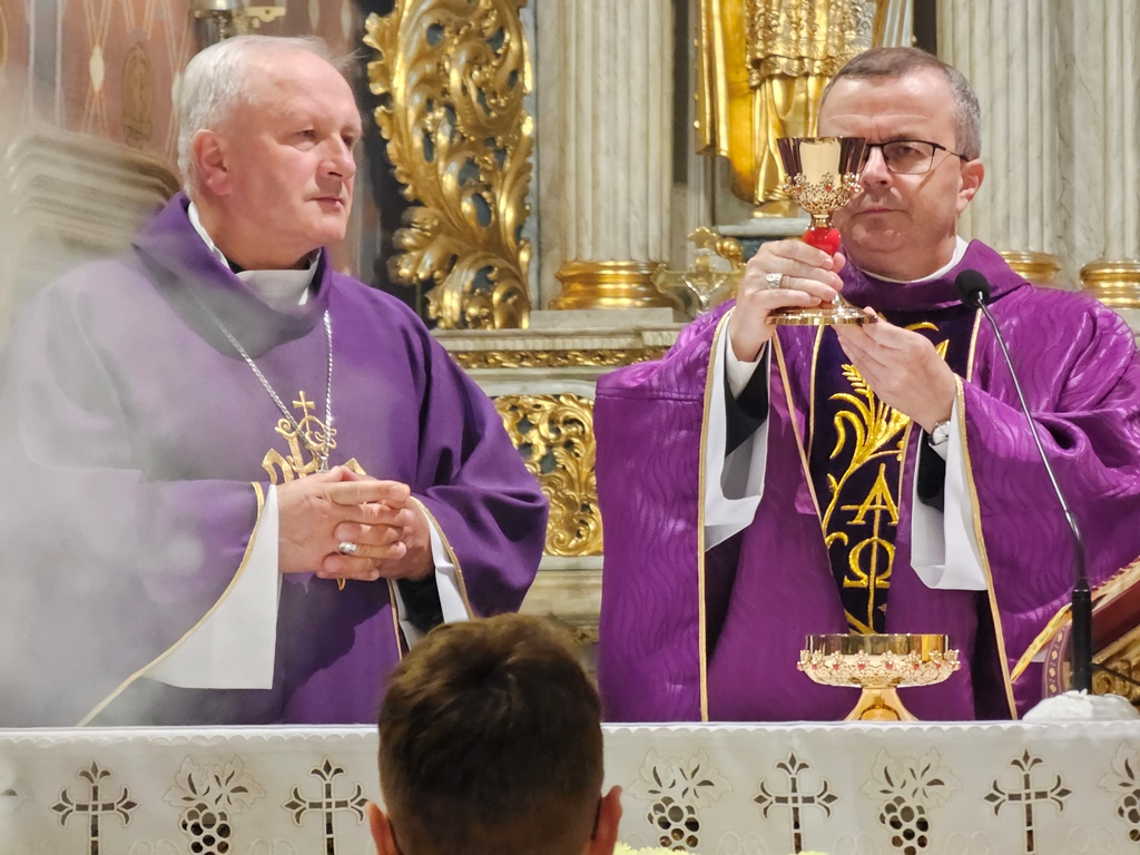 Mszę św. wspólnie z biskupem kaliskim Damianem Brylem celebrowali: biskup pomocniczy Łukasz Buzun, ks. prał. Adam Modliński, proboszcz katedry, ks. kan. Marcin Papuziński, kanclerz Kurii Diecezjalnej w Kaliszu, ks. kan. Krzysztof Duchnowski, proboszcz parafii św. Wojciecha w Wilkowyi i ks. Sebastian Kąkol, wikariusz katedry.