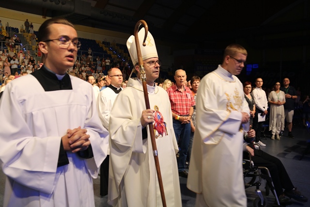 Fot. Ewa Kotowska-Rasiak– Bądźmy narzędziami Bożej dobroci. Niech Bóg Ojciec przez nas przychodzi do innych – mówił biskup kaliski Damian Bryl, który przewodniczył Mszy św. w hali Arena Kalisz na zakończenie 11. Festiwalu Abba Pater. W ramach wydarzenia odbyła się modlitwa uwielbienia, którą prowadził ks. Teodor Sawielewicz, założyciel Teobańkologii. Mszę św. poprzedził Różaniec do Boga Ojca z rozważaniami o. Krzysztofa Piskorza OCD.