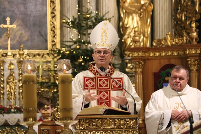 W homilii biskup kaliski wskazywał, że wcielenie Bożego Syna jest największym znakiem solidarności Boga z człowiekiem. – Wielki Bóg staje się bezbronnym dzieckiem, abyśmy nie bali się Go, abyśmy chcieli podejść, wejść z Nim w relację. To jest niezwykła dobra wiadomość, że wielki Bóg chce być blisko mnie – podkreślił celebrans.