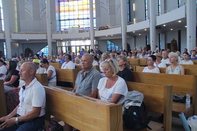 Fot. Ewa Kotowska-Rasiak/KAI– Chciałbym zaprosić, żebyście opowiadali innym, czego doświadczyliście na tej pielgrzymce. Takie świadectwa są najbardziej przekonujące – mówił biskup kaliski Damian Bryl, który przewodniczył Mszy św. w Sanktuarium Miłosierdzia Bożego w Łagiewnikach.
