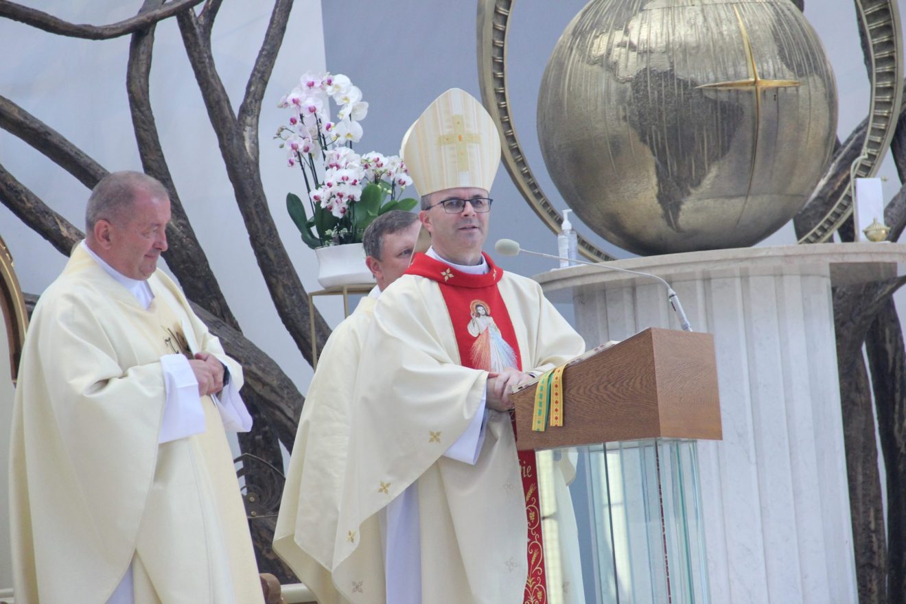 Pielgrzymi odmówili Koronkę do Miłosierdzia Bożego i uczestniczyli we Mszy św. pod przewodnictwem bpa Damiana Bryla, który w homilii podkreślał, że pielgrzymka to czas spotkania z Panem Jezusem, który nas kocha, któremu na nas zależy. – To spotkanie może być spotkaniem umacniającym, wspierającym, pocieszającym, ale może być także spotkaniem przemieniającym. Każde spotkanie z Jezusem nas przemienia. Gdy człowiek spotyka się z Bogiem nigdy z tego spotkania nie wychodzi taki sam. Pozwólmy Jezusowi, by nas przemieniał swoją miłością, abyśmy odmienieni wrócili do każdej przestrzeni naszego życia, do naszych spraw – powiedział celebrans.