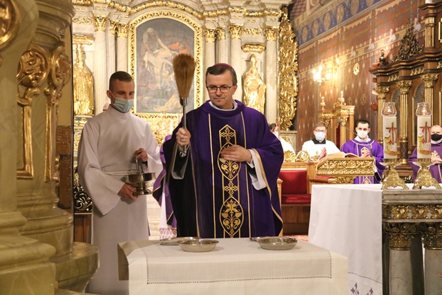 Fot. Ewa Kotowska-Rasiak/KAI– Prośmy o odwagę przyznania się do naszej grzeszności, przyznania się do naszych słabości, ale prośmy też o odwagę podjęcia wysiłku nawrócenia – mówił biskup kaliski Damian Bryl, który w Środę Popielcową przewodniczył liturgii w katedrze św. Mikołaja w Kaliszu.