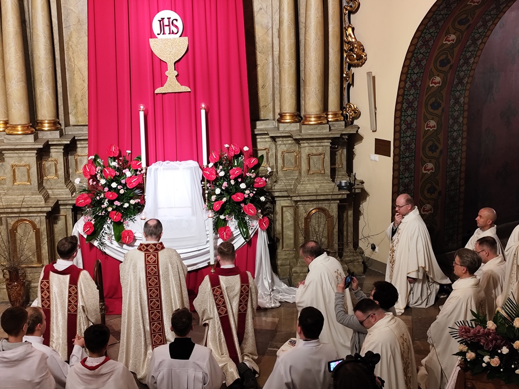 Msza Wieczerzy Pańskiej zakończyła się przeniesieniem Najświętszego Sakramentu do kaplicy adoracji zwanej Ciemnicą, gdzie pozostanie do wielkopiątkowej liturgii na cześć Męki Pańskiej.