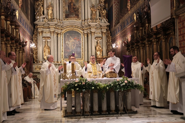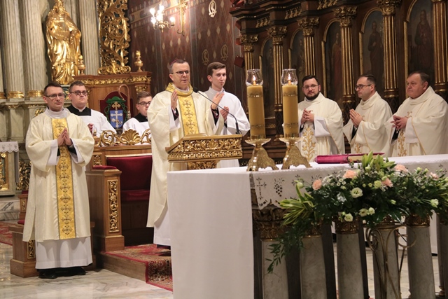 Mszę św. z biskupem kaliskim Damianem Brylem koncelebrowali: biskup pomocniczy diecezji kaliskiej Łukasz Buzun, proboszcz katedry ks. prał. Adam Modliński, emerytowany proboszcz katedry ks. prał. Andrzej Gaweł, kapłani pracujący w Kurii Diecezjalnej i katedrze.