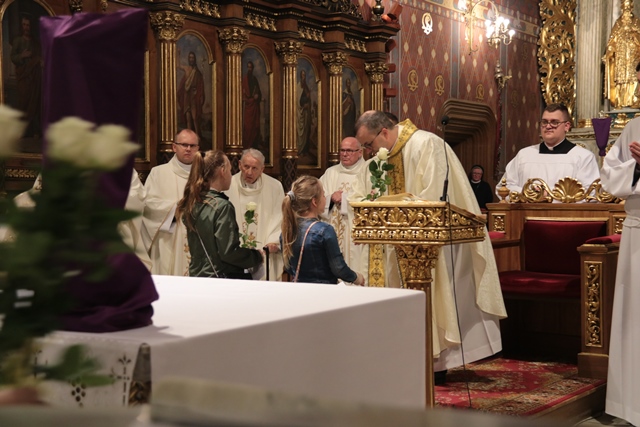 Zaznaczył, że człowiek, który doświadczył Bożego miłosierdzia i przebaczenia będzie mógł czynić miłosierdzie i przebaczenie wobec tych, którzy są obok. – Doświadczenie miłości rodzi miłość. Przyjęty dar przebaczenia kształtuje przebaczające serce. Ta liturgia jest spotkaniem z Panem, który dla mnie czyni gest umywania nóg. Co ja z tym wszystkim uczynię w moim życiu? Czy ta liturgia będzie miała ciąg dalszy, kiedy stąd wyjdę? – powiedział duchowny.