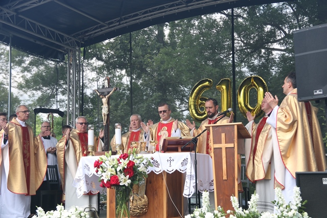 Fot. Ewa Kotowska-Rasiak/KAI– Niech to dzisiejsze świętowanie otworzy nasze serca do wspólnego, mądrego działania na rzecz tej społeczności, bo razem można zrobić wiele pięknych, dobrych i szlachetnych rzeczy – mówił bp Damian Bryl, który przewodniczył Mszy św. z okazji 610-lecia Borzęciczek. Biskup kaliski poświęcił tablicę pamiątkową i ścieżkę edukacyjną im. św. Jana Pawła II oraz posadził dąb.