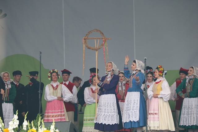 Uroczysty obrzęd dożynkowy poprowadził Zespół Pieśni i Tańca „Łany” im. Wiesława Kaszubkiewicza Uniwersytetu Przyrodniczego w Poznaniu.
