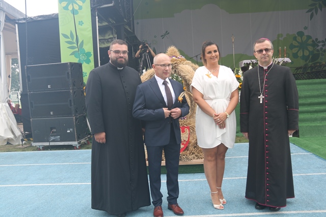 Współgospodarzami dożynek byli starosta pleszewski Maciej Wasielewski oraz burmistrz miasta i gminy Pleszew Arkadiusz Ptak.